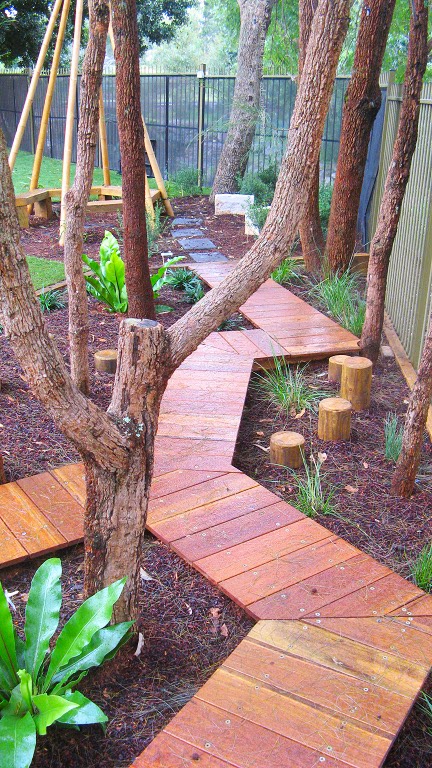 The major challenges in this design was to restructure both playspaces levels to provide a clear direct and safe pathway from top to bottom, maintain clear supervisory sight lines, integrate existing foliage and space that had previously been used for retaining into the overall design and to incorporate play and small group areas.