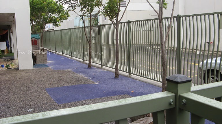 ‘The Tree House Early Childhood Centre is an architecturally designed, purpose built early learning centre catering for children from 6 weeks to 5 years.’ The Centre has four separate playspaces spread over two different levels. The playspaces were new when the Centre was opened 5 years ago but were degraded and in need of A LOT of TLC. In addition, there were with problems with drainage and the base waterproofing had failed. After removing the old surfacing and installing drainage cells, new surfacing, replete with sub-soft fall where required, was installed.